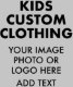 Custom personalised clothing for kids. Design, create, make your own custom children's clothes from a template or blank. Personalised custom printed clothing for children, including all over print kids' clothes. T-shirts, hoodies, sweatshirts, sports wear, socks and more - for girls and boys. The perfect customisable, personalised gift for Christmas, a birthday, kids' party, baby shower, wedding or other special occasion. Customise with a photo, logo or design, and add text. Add your logo and branding for business use.