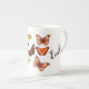Custom personalised bone china coffee or tea mug with pretty butterfly design and name.