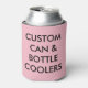 Custom printed personalised CAN COOLER Blank Template with EXAMPLE OF PINK BACKGROUND PRINT (change to any colour or clear) - 3"diameter, 3.75" high. Design, create, make your own. Your photo, image, text, logo, graphics in full colour edge-to-edge print on the entire area (all sides and bottom) of the foam cooler can cover. Fits any standard 12 oz. cans. Collapsible high density open cell polyurethane foam for easy storage. Made in the USA. Great volume discounts