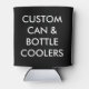 Custom printed personalised CAN COOLER Blank Template with EXAMPLE OF BLACK BACKGROUND PRINT (change to any colour or clear) - 3"diameter, 3.75" high. Design, create, make your own. Your photo, image, text, logo, graphics in full colour edge-to-edge print on the entire area (all sides and bottom) of the foam cooler can cover. Fits any standard 12 oz. cans. Collapsible high density open cell polyurethane foam for easy storage. Made in the USA. Great volume discounts