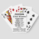 Custom personalised pack of CANASTA Playing Cards. Design, create, make your own Canasta game cards from a template or blank. Fully customise the back of the card pack and the box with a photo, logo or design, and add text. 52 playing cards and two jokers in each easy to shuffle, smooth card stock, 2.5" x 3.5" standard size deck - official size playing cards. A great personalised, customisable gift for poker night, a wedding favour, Christmas, a birthday or other special occasion. Choose from 10 popular card games. Upload your logo and branding for a casino, poker tournament, retirement home, hotel, club, or for a corporate gift or promotional giveaway.