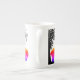 Custom personalised bone china coffee or tea mug with colourful elephant design and name.