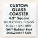 Custom personalised Glass Coaster, 4.2" square, made from 100% quality smooth glass with 3M™ Bumpon™ rubber feet that can also serve as a trivet. Customise edge-to-edge in vibrant full colour, dishwasher safe. Make, create your own personalised GLASS COASTERS. Upload your own logo, design, photo, image plus add text.