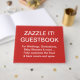 Custom printed personalised GUESTBOOK 11" x 8" Blank Template with EXAMPLE OF RED BACKGROUND PRINT ON FRONT COVER (change colour, replace or clear). Design, create, make your own. Your photo, image, text, logo, graphics in full colour print on the front and back covers, and the spine of the guestbook. 61 sheets; 122 pages. Laminated front and back hard covers with a glossy finish, cover printed on silver halide photo paper. Standard non-customisable interior 70 lb cream coloured writing pages with vellum lining sheet - front and back. Protective outer box included - non-customisable.