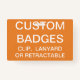 Custom printed personalised 3.38" x 2.13" BADGE Blank Template (with ORANGE Background - change to any colour). Design, create, make your own. Your photo, image, text, logo, graphics in full colour edge-to-edge print on the front and the back - horizontal or vertical designs. Made of PVC plastic, durable, won't fade or tear. Available with Lanyard, Metal Clip, Retractable Clip, or Badge Only.