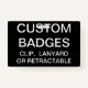 Custom printed personalised 3.38" x 2.13" BADGE Blank Template (with BLACK Background - change to any colour). Design, create, make your own. Your photo, image, text, logo, graphics in full colour edge-to-edge print on the front and the back - horizontal or vertical designs. Made of PVC plastic, durable, won't fade or tear. Available with Lanyard, Metal Clip, Retractable Clip, or Badge Only.