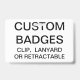 Custom printed personalised 3.38" x 2.13" BADGE Blank Template. Design, create, make your own. Your photo, image, text, logo, graphics in full colour edge-to-edge print on the front and the back - horizontal or vertical designs. Made of PVC plastic, durable, won't fade or tear. Available with Lanyard, Metal Clip, Retractable Clip, or Badge Only.