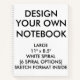 Custom printed personalised BLANK SKETCH NOTEBOOK with WHITE SPIRAL (6 Colour Options) Blank Template - 8.5" x 8.5" (60 sheets, 120 pages). Design, create, make your own. Your photo, image, text, logo, graphics in laminated full colour edge-to-edge print on the front and back covers of the notebook. 60 lb. durable text smooth paper, laminated front and back covers, CPSIA compliant. SHAPE OPTIONS: Rectangular, Square or Heart shape. SPIRAL COLOR OPTIONS: Black, White, Grey, Red, Blue or Green. PAGE DESIGN OPTIONS: Wide Ruled, College Ruled, Sketch, Practice, Sketch/Practice, Wide Ruled Sketch/Lined, Graph or Recipe (Heart shaped: Lined or Plain only). Best for school, college, kitchen, office, notes and ideas, and for birthday and Christmas gifts.