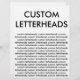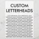 Custom printed personalised BASIC LETTERHEADS Blank Template 11" long x 8.5" wide (standard US letter size). Design, create, make your own. Your photo, image, text in high quality full colour full-bleed edge-to-edge print on the front of the letterhead, for either vertical or horizontal designing. Compatible with inkjet and laser printers. Choose from five different paper types: Basic, Felt, Recycled, Speckled, Linen.