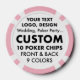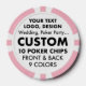 Design, create, make your own casino chips from a template or blank. These fun casino chips have an 'easy stack' textured surface. Choose from 9 colours of classic stripe on the poker chip edge: Red, Blue, Green, Black, Yellow, Pink, Orange, Light Blue and Grey, and customise the front, back and edge of your poker chips with a photo, picture, image or design, and add text, vividly printed on high quality composite plastic. Add your logo and branding for business promotion, and makes a perfect favour gift for a wedding, or token for a birthday, sweet sixteen or bachelorette party, corporate celebration or other special event. A great customisable, personalised gift for Christmas or any occasion. Poker Chip Dimensions: 1.55" diameter x 0.125" thick.