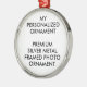 Custom Personalised PREMIUM 2.125" ROUND SILVER COLORED METAL PHOTO ORNAMENT. Your full colour printed photos or designs protected with a waterproof and UV-resistant coating.