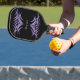 Stand out from the rest with this custom black pickleball paddle featuring a purple tribal design and personalised with your name.