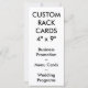 Custom printed personalised 9" x 4" RACK CARD Blank Template. Design, create, make your own rack cards, menu cards, wedding programs, promotional hand-outs. Your photo, image, text, logo in high quality, full-bleed, full colour print on both sides of the rack card. 4"l x 9"w (portrait) or 9"l x 4"w (landscape) 100 lb. white card stock with a gloss finish.