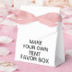 Custom printed personalised TENT FAVOR BOXES WITH PINK RIBBON Blank Template. Design, create, make your own. Your photo, image, text, logo, graphics in full colour print on the entire outside of the high quality card stock favour box - boxes shipped flat. Five box styles. Best for wedding favours, a birthday, corporate event, Christmas party and more.