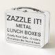 Custom printed personalised WHITE METAL LUNCH BOX Blank Template - 6.75” high x 8.625” wide x 3.75” deep, Weight: 12 oz. Design, create, make your own. Your photo, image, text, logo, graphics in full colour print on one side or on both sides of the lunchbox. Food contact safe interior material, durable - CPSIA complaint - tin plate, with collapsible black plastic handle. Choose from 6 base colours: White, Stainless, Black, Dark Blue, Light Blue & Red.