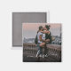 Cute romantic Love text written in a stylish elegant typography font on a square or round fridge magnet. With option to personalize or customize with photo of your choice. Fun keepsake gift, easily customizable with a photograph of your choice. A cute little something present for somebody who spends a lot of time in the kitchen and/or at the refrigerator. Or for a person who works from home or who just got a new office job and has metal file cabinets that could use some sprucing up with a personal touch.