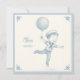Cute announcement card featuring a pencil drawing of a little boy in a sailor suit floating under a balloon in the style of Delft ceramic tiles. The text is fully personalizable. Perfect as a birth announcement.