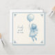 Cute square card featuring a pencil drawing of a little girl in a frilly dress floating under a balloon in the style of Delft ceramic tiles. The text is fully personalizable. Perfect for a new baby's birth's annoucement card!