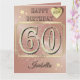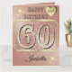 Custom personalized rose gold themed 60th birthday greeting card idea for sister. Create a 60th birthday card for Mom, daughter, wife or girlfriend.