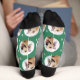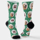 Custom Pet 2 Photo Green Paw Print Socks