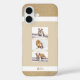 Custom Pet 3 Photo Collage and Name iPhone 16 Case. A personalised photo phone case for a dog owner. Modern design on a beige background with faux gold glitter. Personalise the phone case with 3 of your favourite pet photos and a name in trendy script. A perfect personalised gift for a dog owner and an animal lover.