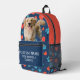 Custom pet portrait backpack - personalised with dog/cat photo and name on durable 600D polyester with laptop sleeve