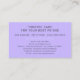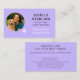 A fresh and modern lavender business card designed for pet sitters, dog walkers, and animal care providers. Featuring a minimalist layout with a subtle paw accent and customisable photo, this professional yet playful design is perfect for building trust with clients. Ideal for pet care professionals offering dog walking, cat sitting, or vacation pet care services.
