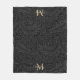 Custom Pet Name Black Botanical Gold Script fleece blanket with a monogram and script name.
