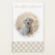 Beautiful custom pet photo template with white paws on a beige (changeable) background colour by Destei. Personalise this design by changing the sample Golden Retriever puppy photo with your own image. Also edit the personalizable text area with your custom text. The photograph is shown through a round shape that creates an uneven soft edge to any photo. The bottom has a beige colour with a pattern of white dog paw prints. If you would like to change the beige background or font colour to any other colour, please enter the design tool to do it. This stylish design with a personalizable pet photograph was designed with pet owners and animal lovers in mind.