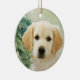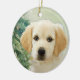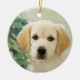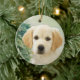 Custom ceramic Christmas ornament with space for a pet photo and name.