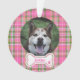 Custom Pet Photo Ornament Pink & Green Plaid Bone