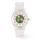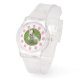 A watch featuring a pink paw prints with numerals. Personalise with your own pet photo upload at centre.