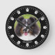 Personalizable photo template for pet owners featuring Destei's stylish paw design clock face that can be changed to any colour. While the sample template has a white colour clock face and a black background colour, you can choose a clock face colour and background colour that best compliments your custom photograph. There is also a personalizable text area on this design.