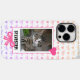 Treasure your cherished pet memories and add a touch of adorable charm to your everyday life with this captivating custom phone case featuring a personalised pet portrait framed in a retro instant photo style, adorned with delicate pink ribbons and hearts. This heartwarming design exudes a sense of nostalgia, love for pets, and a touch of feminine flair, making it a perfect accessory for any pet owner who cherishes the special bond they share with their furry companion. Customise with your pet's name and photo.
