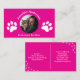 Design your perfect Pet Sitter Business Card featuring a customisable photo and name on the front, with essential contact info and services offered on the back. Ideal for professional pet sitters, dog walkers, and animal caregivers looking to stand out. Order now for a personalised, eye-catching card that leaves a lasting impression.