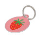 Custom pet tag with cute red strawberry logo. Round collar label with personalised contact info. Cute Birthday gift idea for new pet owner or animal lover.