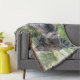 A quality printed throw has its advantages. This is a much finer weave throw than its loopier cousins, and though lighter, it is worth the investment for custom room accessorizing. The back is much prettier than the typical brown, and the fringe on the long sides very vivid, the selvage nicely done. Before photographing, I washed the throw in cold water, delicate, with a thicker woven throw the same size. On tumble dry low, this throw was dry in half the time as the other. This is a very practical quality if you use throws for furniture covers or to wrap up in frequently. The sleekness of the fabric makes it a great layer for accenting or protecting without the feeling of sitting on too much stuff. Perfect for napping or when you feel a light chill coming on. The color printing is beautiful and on this fabric, matched the design and color of my Photoshop image. This is an advantage for blending room fabrics and colors. The fringe on the short sides prints the colors from the design image and therefore varies from the side fringe. I streaked a white fractal line through the plaid pattern to give the illusion of weaving. This printed as crisp as an illusory thread, and put some white in the short side fringe, showing another advantage of print vs loomed- for artistic purposes, line lines, detail, and color integrity can be planned and preserved. My loomed throws have color limitations and more of a needlepoint texture. Print throws reproduce an exact image. The throw felt a little stiff straight out of the package, but this went away in the first delicate wash. Of course I searched the wash water for ink or bleeding and there was none.