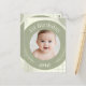 Celebrate your little one's milestone first birthday with our charming sage green botanical postcard invitation! Click on 'Personalise' and start editing to upload your baby's adorable photo and customise party details. Features elegant sage green palette with delicate leaf accents and modern typography perfect for memorable celebrations. High-quality cardstock printing that's affordable and easy to mail - a special keepsake that parents will love sharing with family and friends. Ideal for first birthdays, baby announcements, and creating lasting memories.