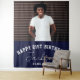 Happy Birthday! Custom Photo Booth or Party Wall Backdrop as birthday party wall decor! Space for 1 huge photo with your name, message, and birthday date. This layout features a modern, sporty typography design as well as a cool signature script. This is the navy blue version.