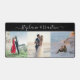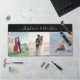 Personalised large desk or workspace mat with 3 of your own photos and custom name text in a modern trendy calligraphy swirl font.