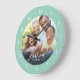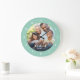 Create a special one of a kind round or square wall clock personalized with your photo and family name monogram. The design features simple modern mint and white colors, or use the design tools to choose any fonts and colors to match your own home decor style. A custom clock is a unique Christmas gift idea for grandparents, new parents or a fun housewarming gift for newlyweds decorating their first home together.