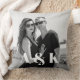 This custom keepsake throw pillow features a sample black and white photograph of a newlywed couple covering the entire front, which you can replace with your own photo or image of your choice. Two large monogram initials are printed in the bottom potion which you can personalise to include your own custom initials, name, or other text. It makes a wonderful, sentimental gift.
