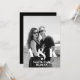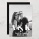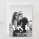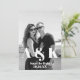 This custom save the date for the wedding invitation features a modern design with a sample black and white photograph of a newlywed couple covering the entire front, which you can replace with your own photo or image of your choice. Two large monogram initials are printed in the bottom potion, followed by the wedding date.
