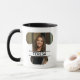 This mug has a minimalist design featuring a custom image shaped into a fat alphabet letter, T, with a space in the center to add a person's name. It is a great way to create a personalized mug for a special person.