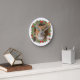 Keep track of the time in the most festive way with this adorable customizable wall clock! The clock features a vibrant Christmas wreath frame, complete with green pine boughs, red bows, holly berries, and charming little kawaii cats wearing Santa hats and sitting amongst Christmas lights and presents. The center of the clock allows you to display your favorite photo—perfect for showcasing your beloved cat, dog, or family picture—along with a customizable space for a pet's name (like "TOMMY") or a short holiday message. This unique, personalized timepiece makes a wonderful Christmas gift or a cute addition to any cat lover's holiday home decor.