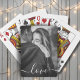 These custom playing cards feature your favourite photo with a white "love" script overlay design that includes elegant flourishes. The white text can be modified to your favourite saying, font or colour.