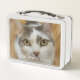 This is a standard metal lunchbox that appears to work just fine. We designed this box ourselves with an uploaded photo and custom text on the front and back. It looks absolutely beautiful except the front of the lunchbox is not centered like it shows in the photo. The print borders don't align with the inset flat part of the box where the preview photo online showed it perfectly centered in there. The back looks nice and centered though.