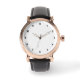 Custom Photo Art Text Men's Rose Gold Vintage Black Strap Watch with clock face numbers. Add art, a photo, or colour behind the watch face image, or keep the look. Edit it in the Toolbar Design if the image needs to be resized to fit.