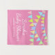 Custom photo backdrop for baby shower party. Cheerful design with coloured pennant flags on a string. Great for celebrations with friends and family. Add your own personalised text to celebrate your newborn girl or boy. Cute party supplies for kid's parties. Pink or custom colour background.