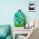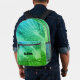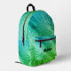 Custom photo backpack with green palm leafs print. Personalised bag design. Make your own print or background colour. Cool gifts for men and women. Upload your own unique pictures. Tropical palm tree example. Exotic green and turquoise blue colours. Great for beach, work, office, sports, school and more.